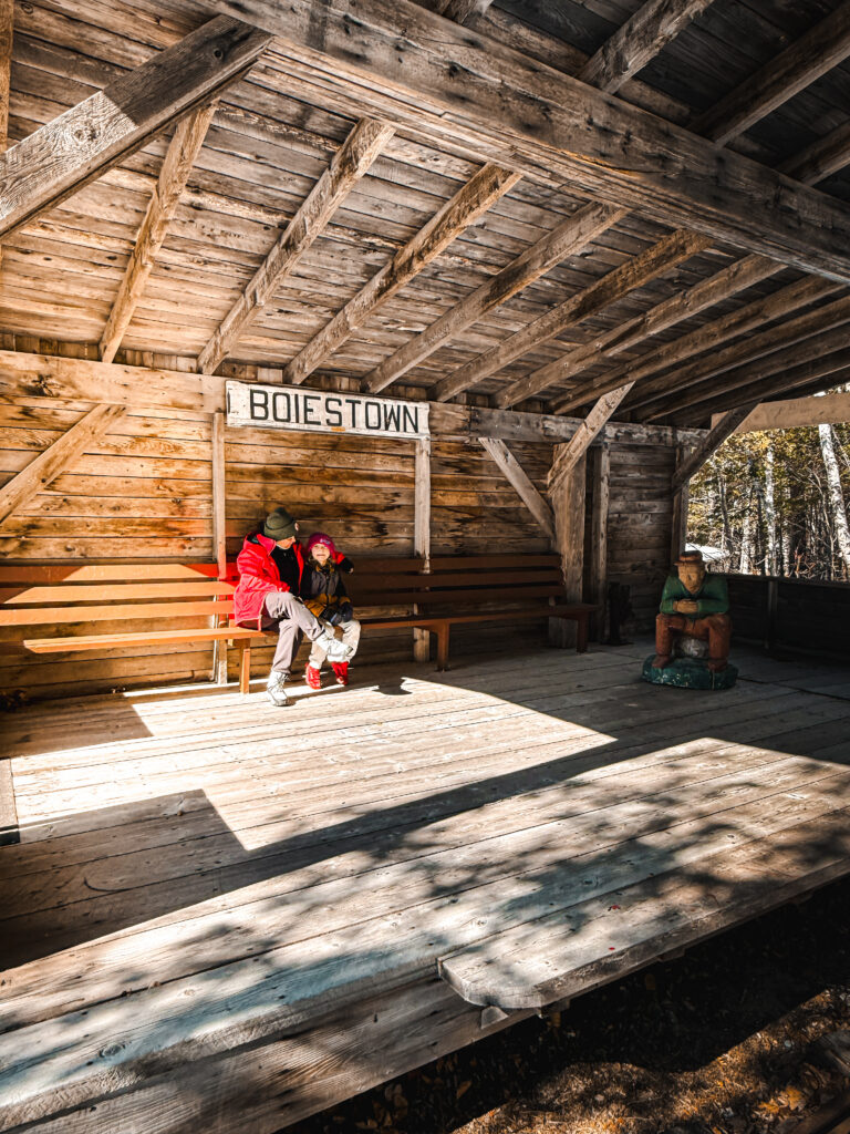Even in the off-season, walking the grounds gave us a real sense of the place. The covered Boiestown shelter, the Porter Brook Station train car, the log construction throughout. In short, it’s quietly impressive. The kind of history that doesn’t announce itself loudly but sits there solidly and waits for you to pay attention.